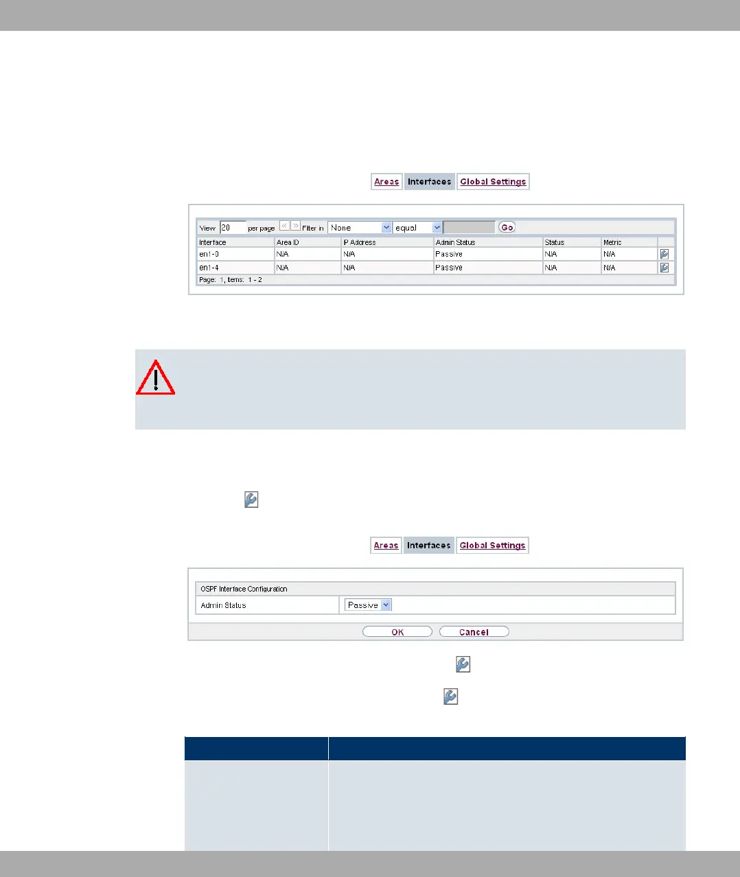 terface. If OSPF is not yet activated, only the Admin Status field