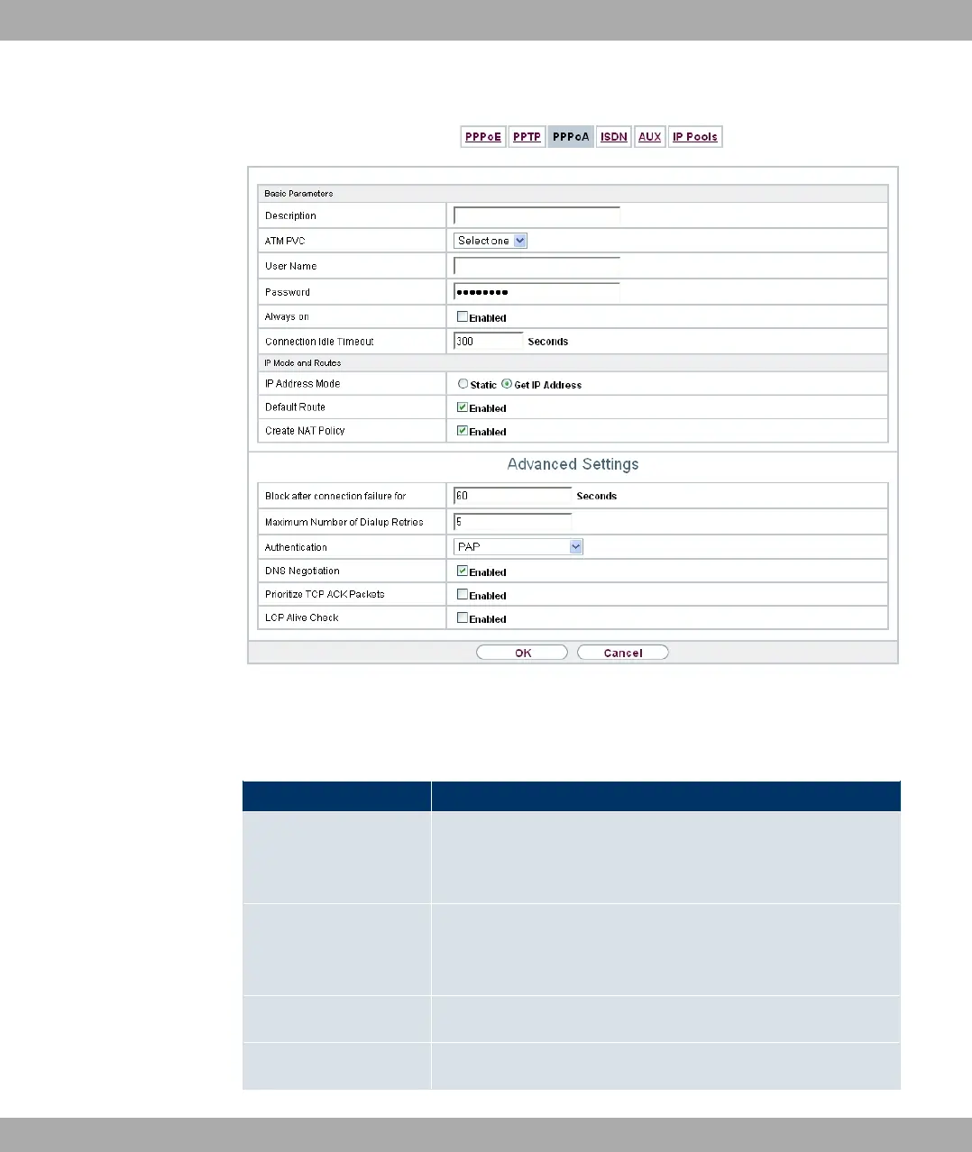 Fig. 112: WAN->Internet + Dialup->PPPoA->New