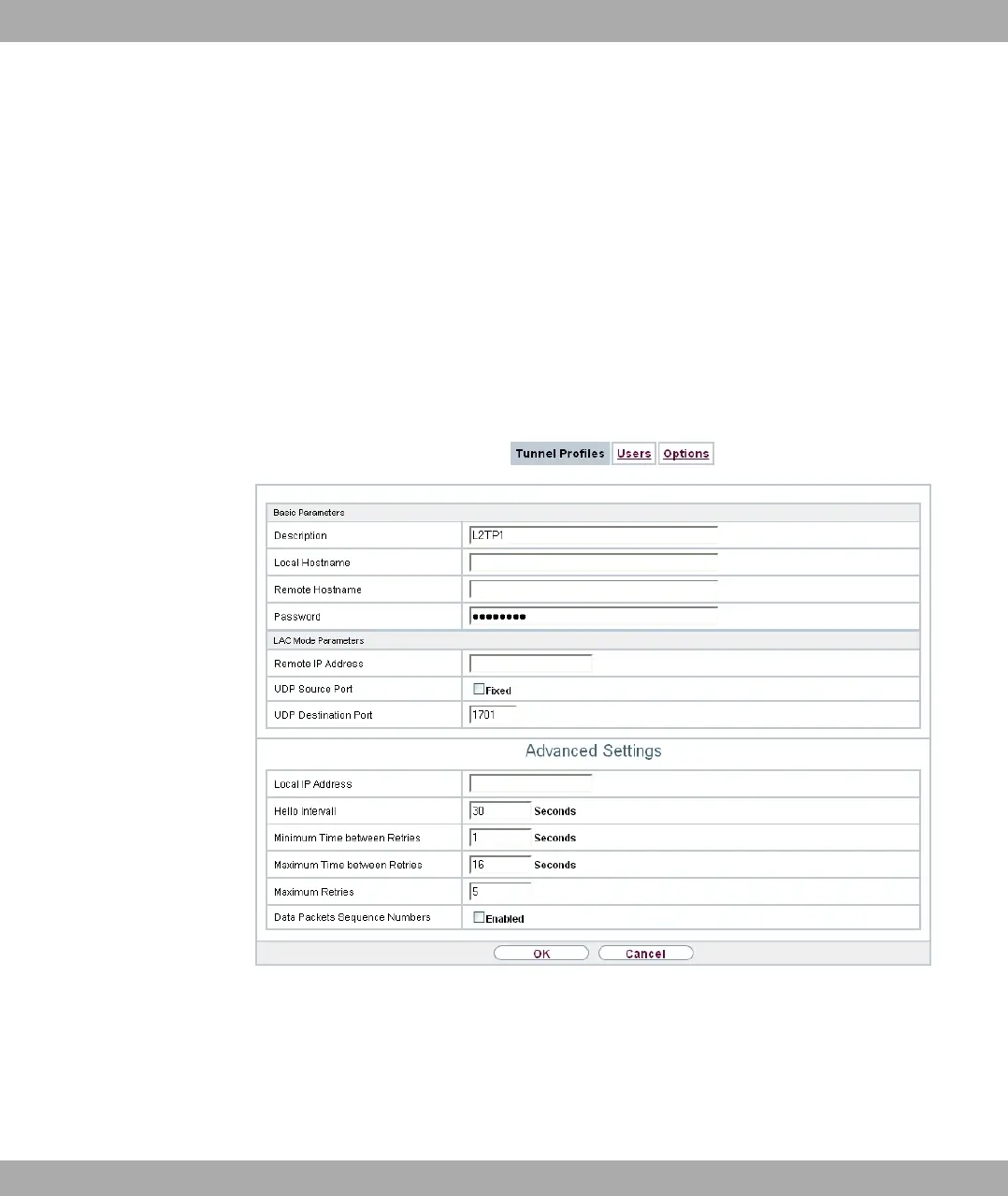 The menu VPN->L2TP->Tunnel Profiles ->New consists of the following fields: