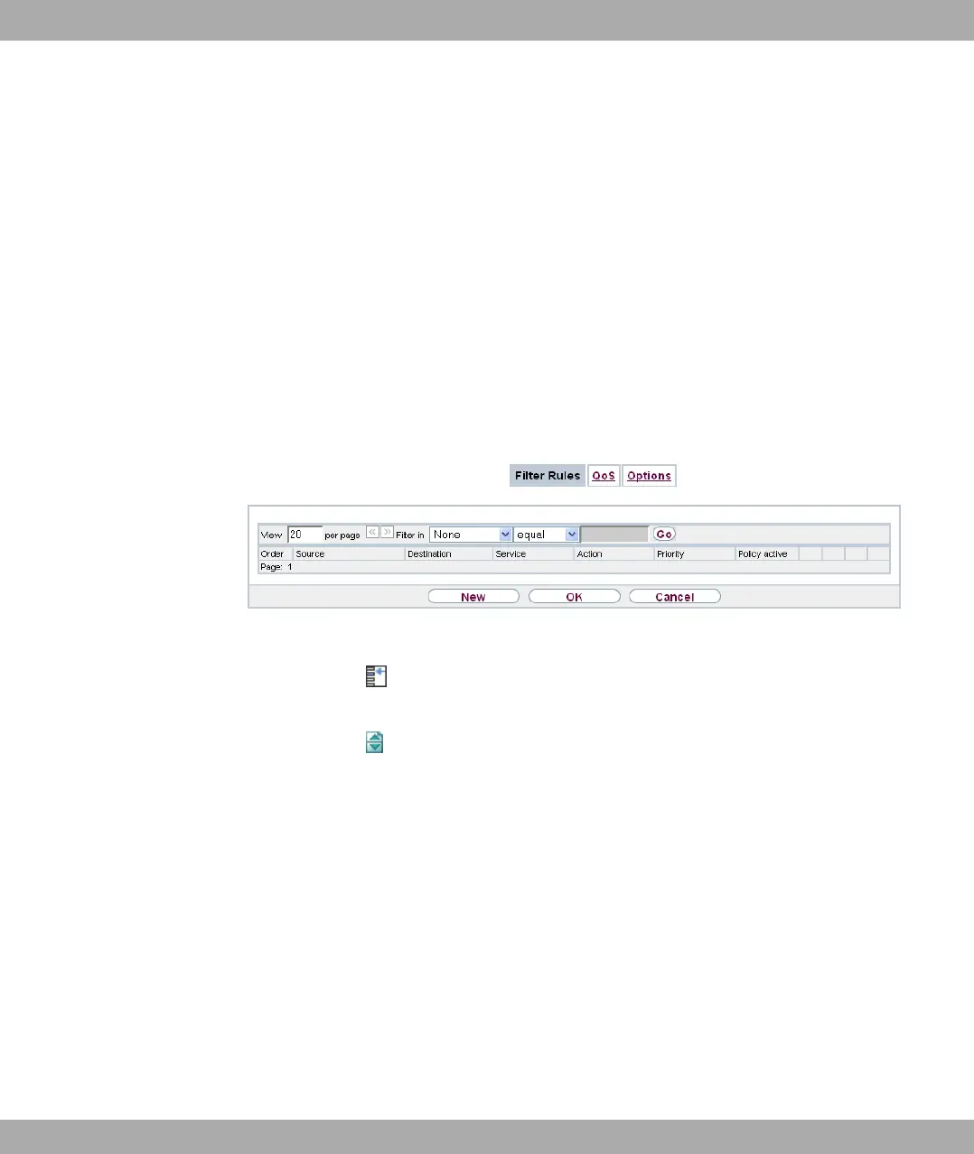 A list of all configured filter rules is displayed in the Firewall->Policies->Filter Rules