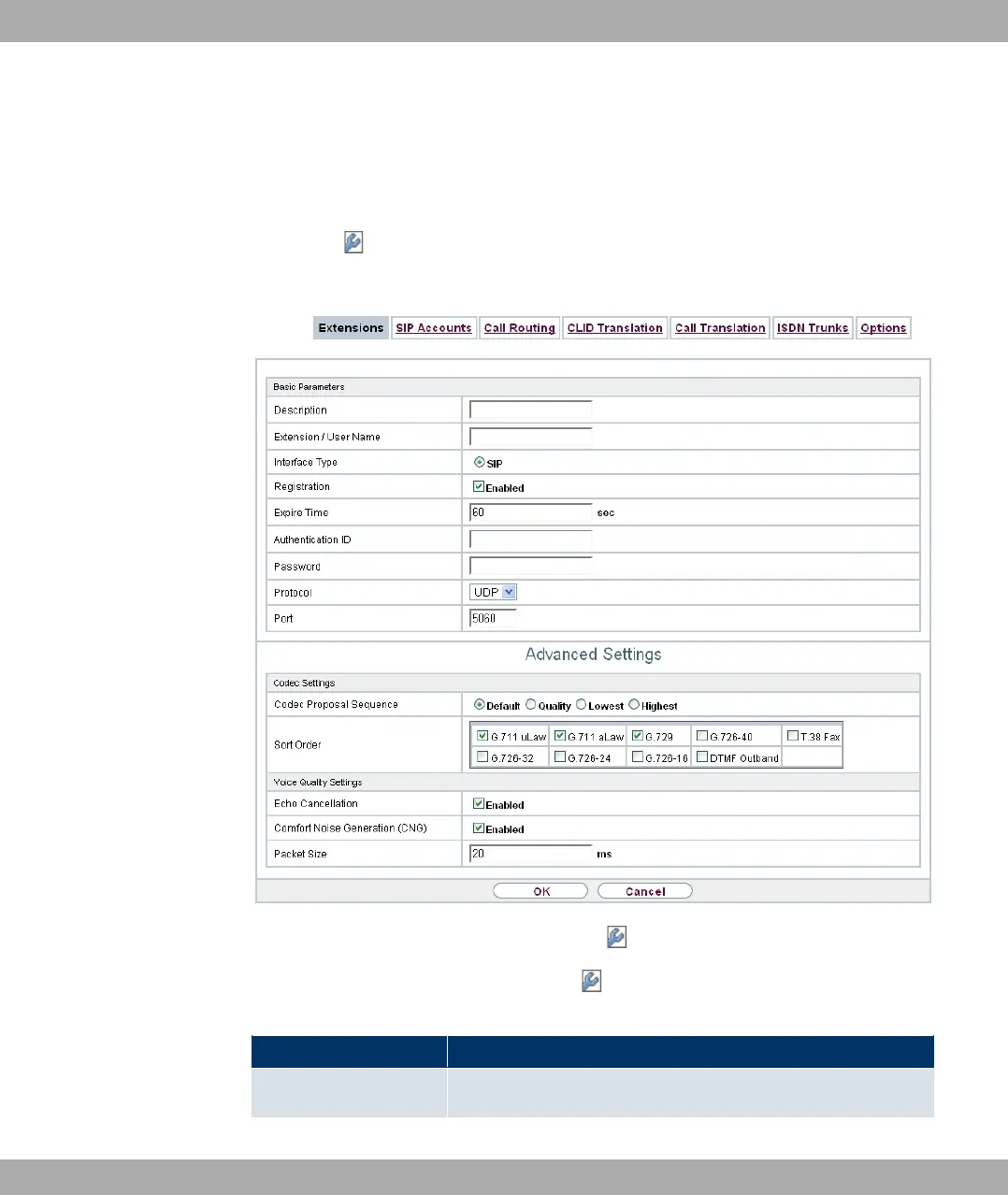 Choose the icon to edit existing entries. Select the New button to create new exten-