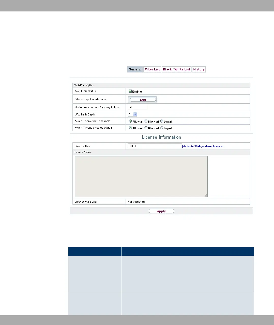 The Local Services->Web Filter+Generalmenu consists of the following fields: