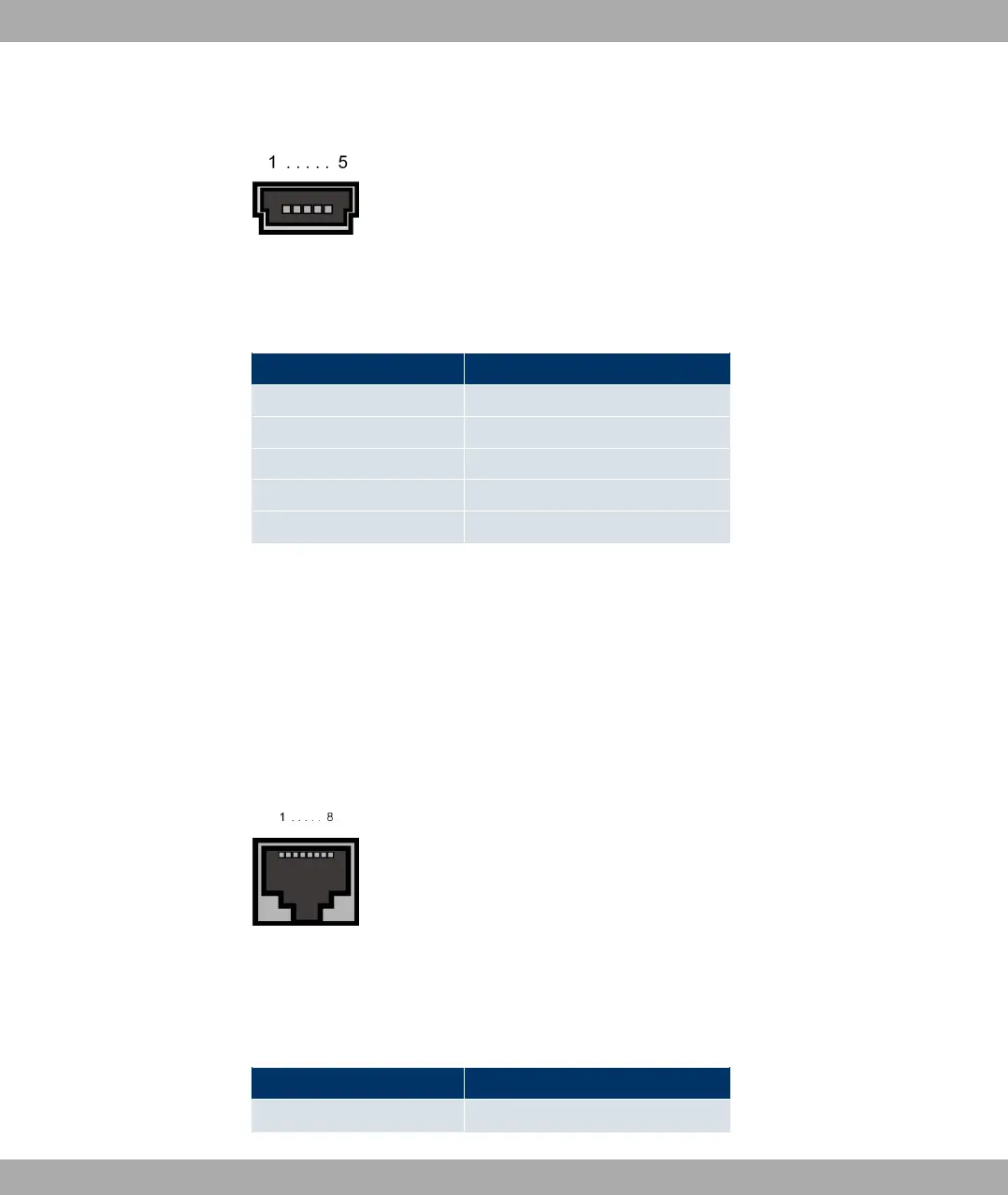 The pin assignment for the Ethernet 10/100/1000 Base-T interface (RJ45 connector) is as