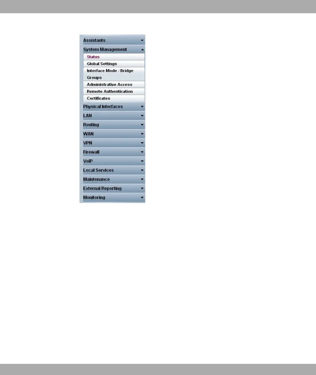 The navigation bar also contains the main configuration menus and their sub-menus.