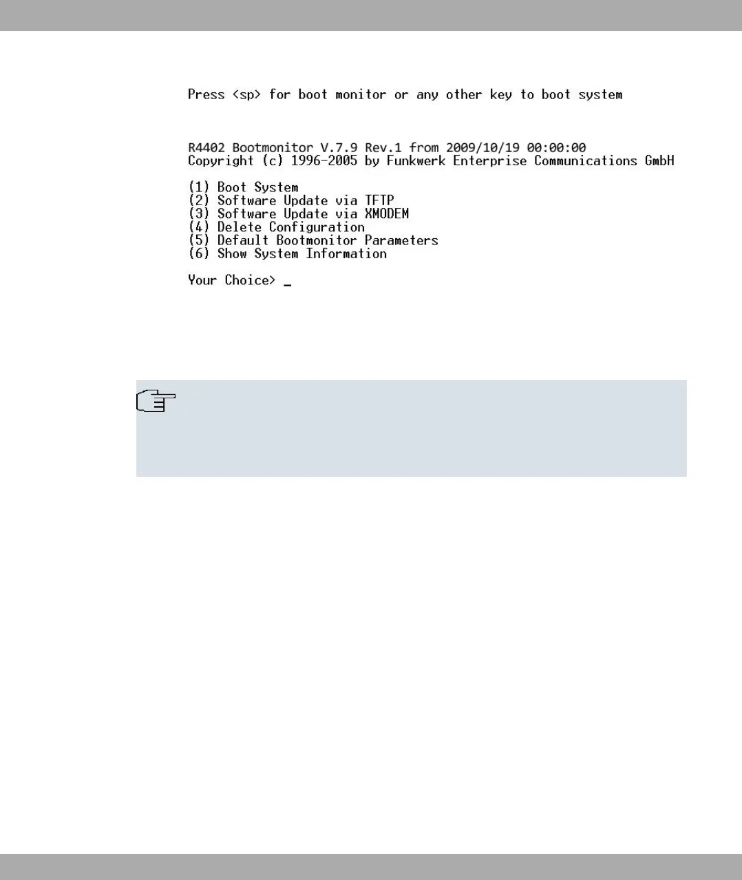 the functions of the BOOTmonitor. If you do not make an entry within four seconds, the