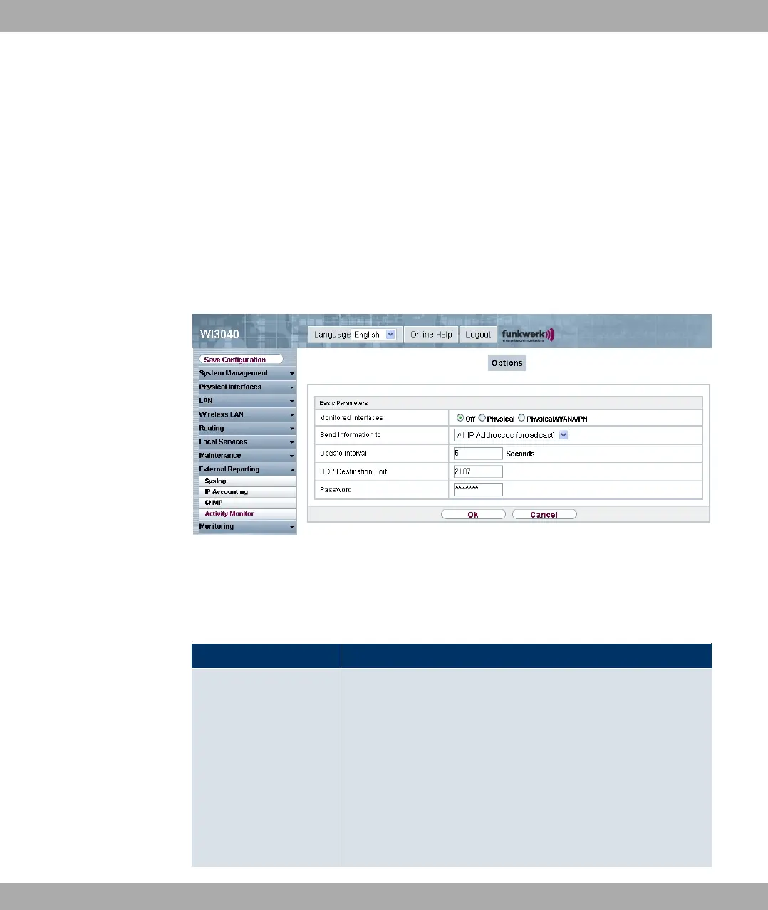 Fig. 106: External Reporting -> Activity Monitor-> Options