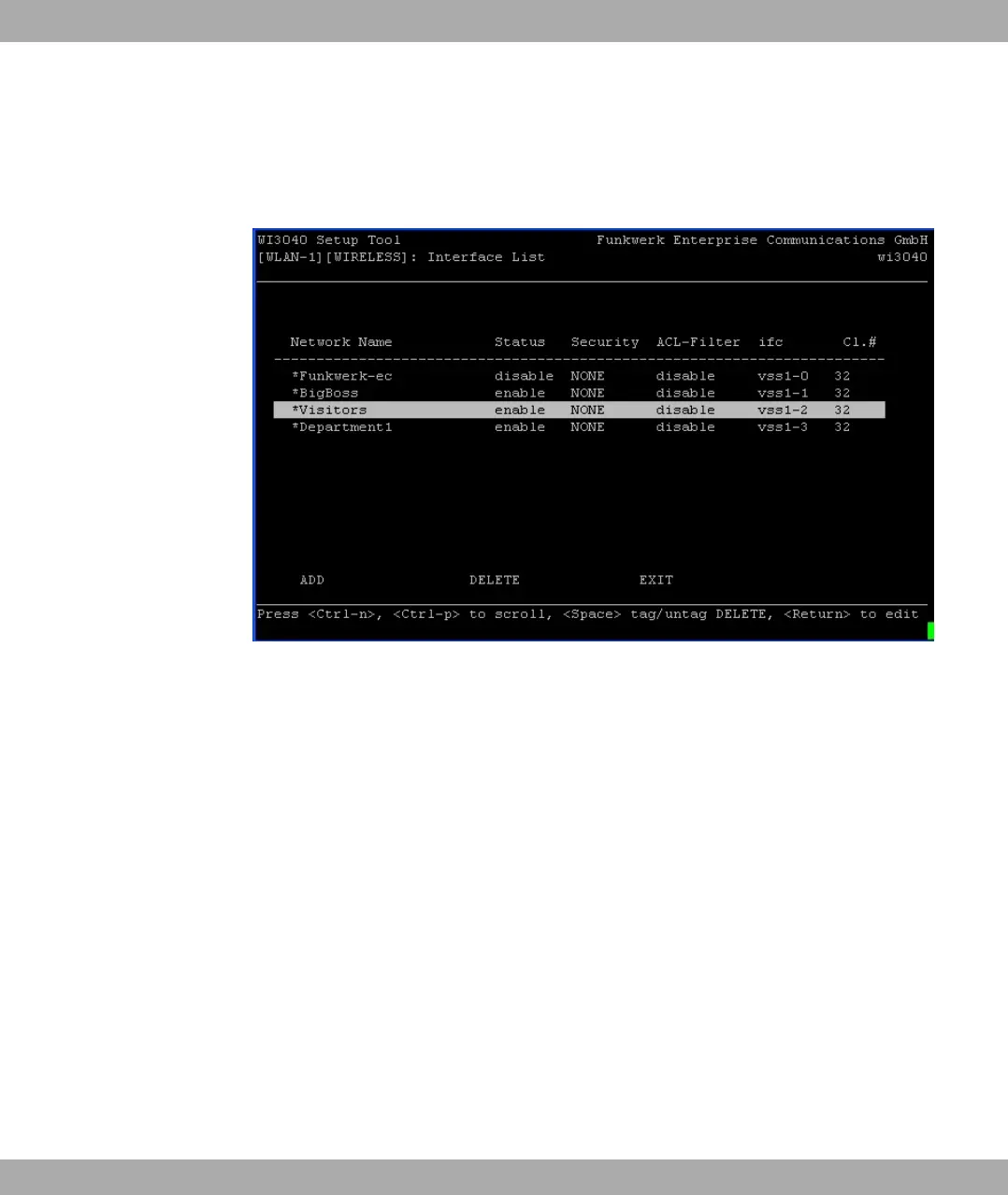 Some Setup Tool menus contain lists with several entries, e.g. the VSS Configuration