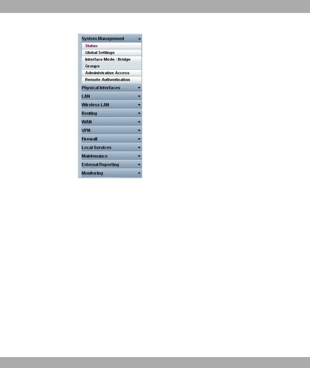 The navigation bar also contains the main configuration menus and their sub-menus.