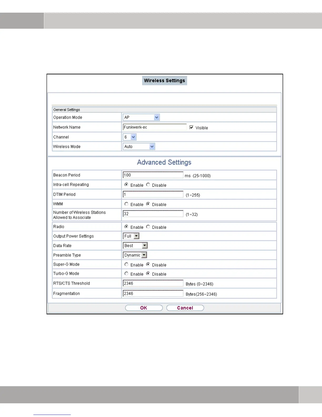 Figure 3-4: Wireless settings