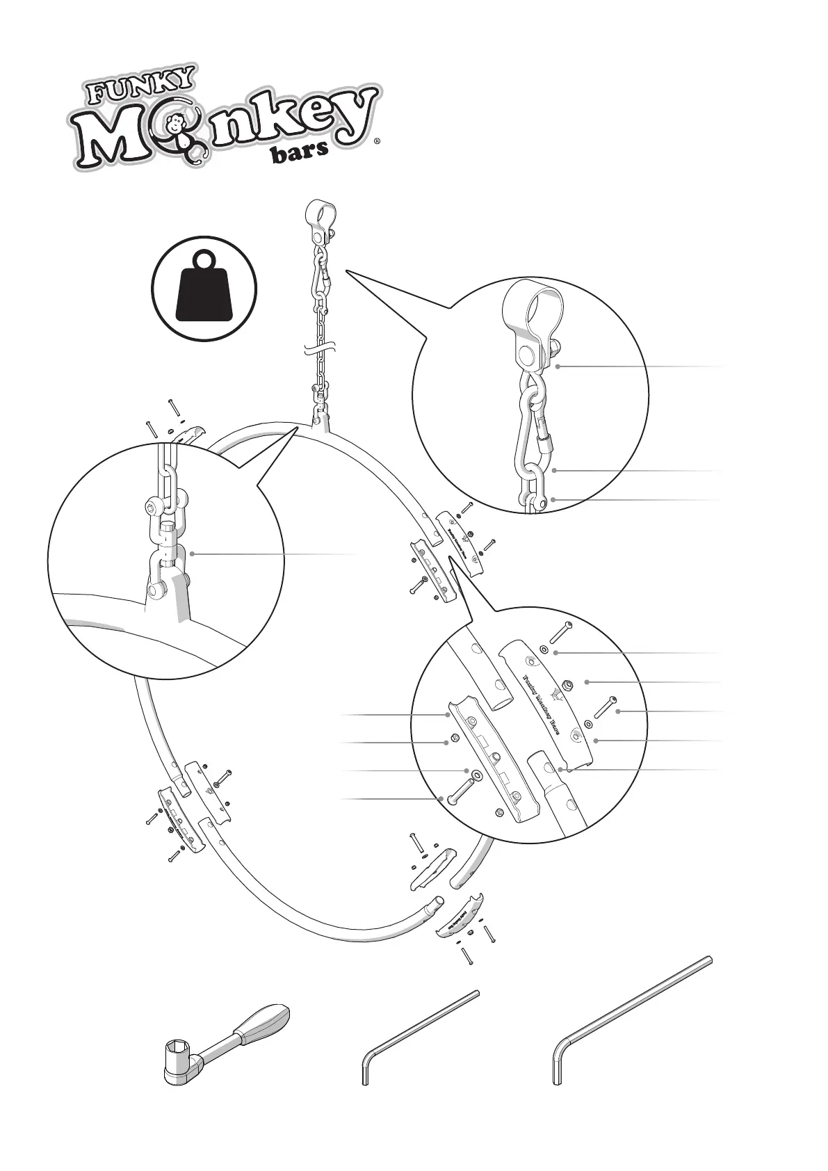 FUNKY MONKEY BARS Aerial Hoop - Required Tools; Aerial Hoop Parts List