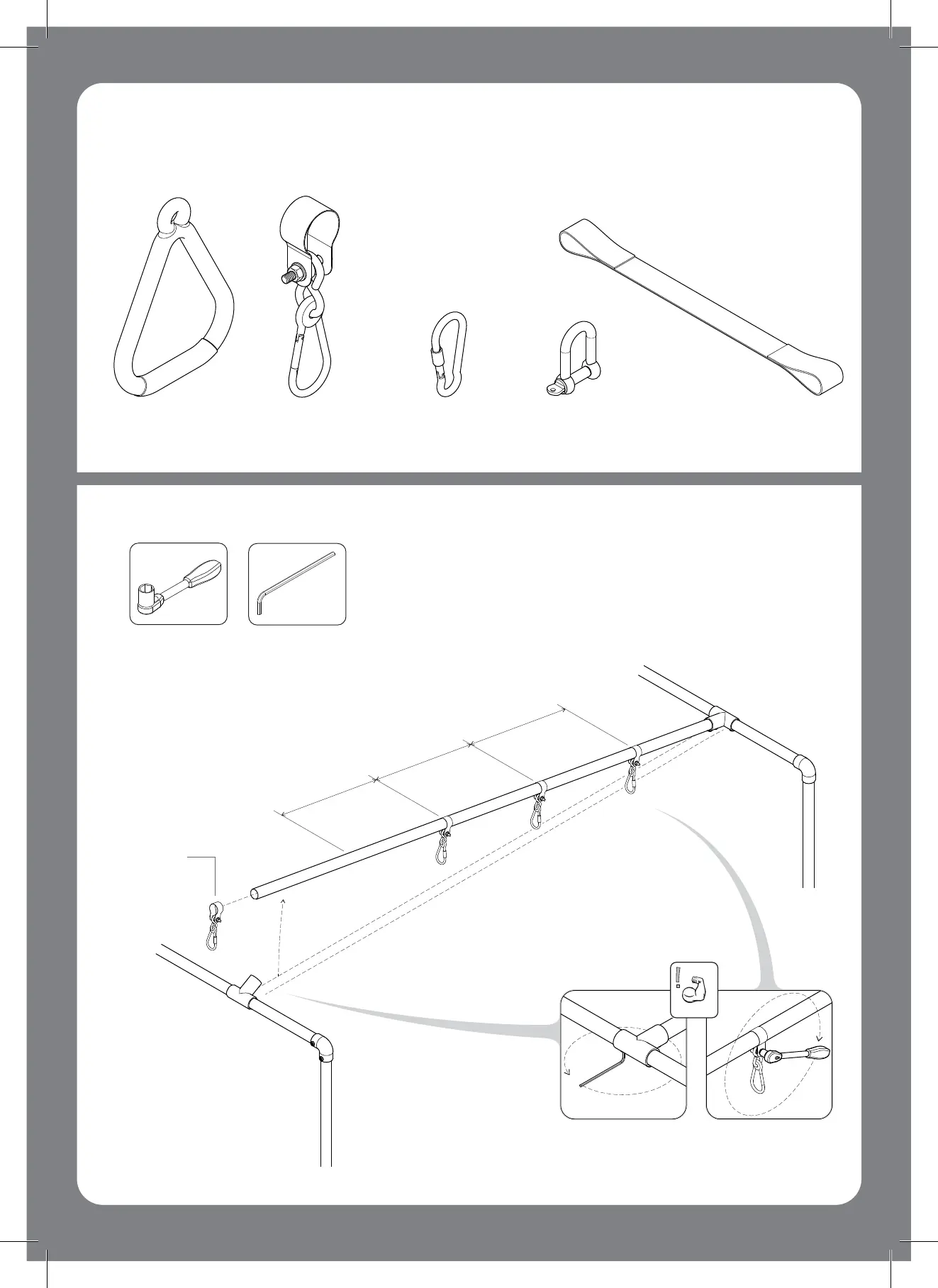 Fully tighten all fitting grub screws and swing hook bolts.