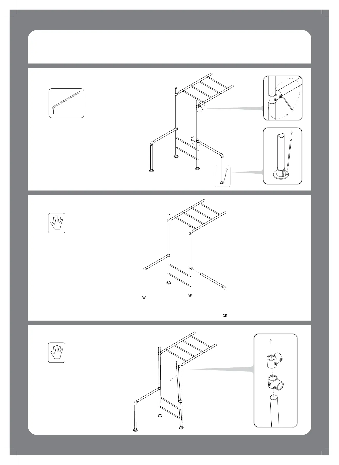 THE FOLLOWING GYM BAR ADD-ON ASSEMBLY INSTRUCTIONS WILL BE DEMONSTRATED ON LEG A (STEP 2)
