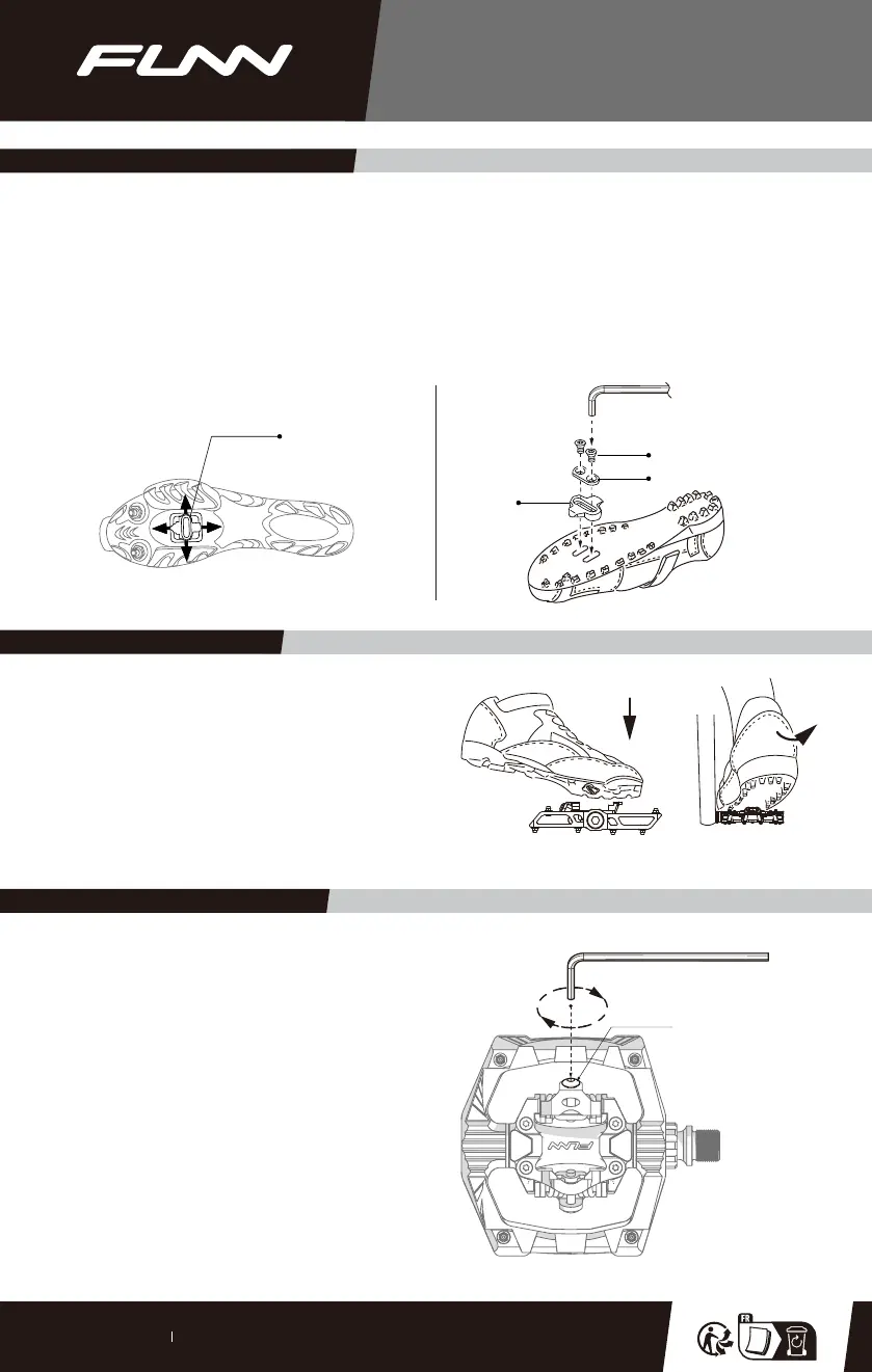 through the slots in the shoe's sole. For horizontal alignment, utilize the interplay between the cleat washer and the cleat itself.
