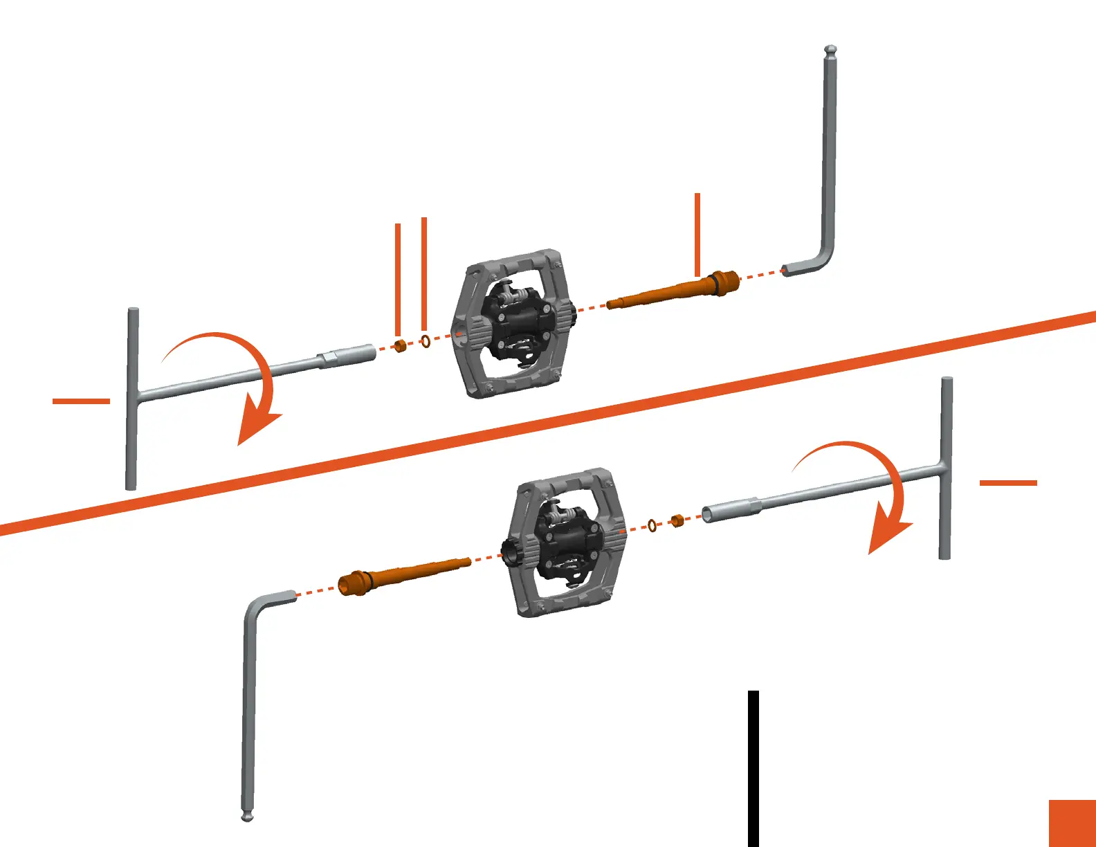Insert the pedal axle and use 8mm hex key