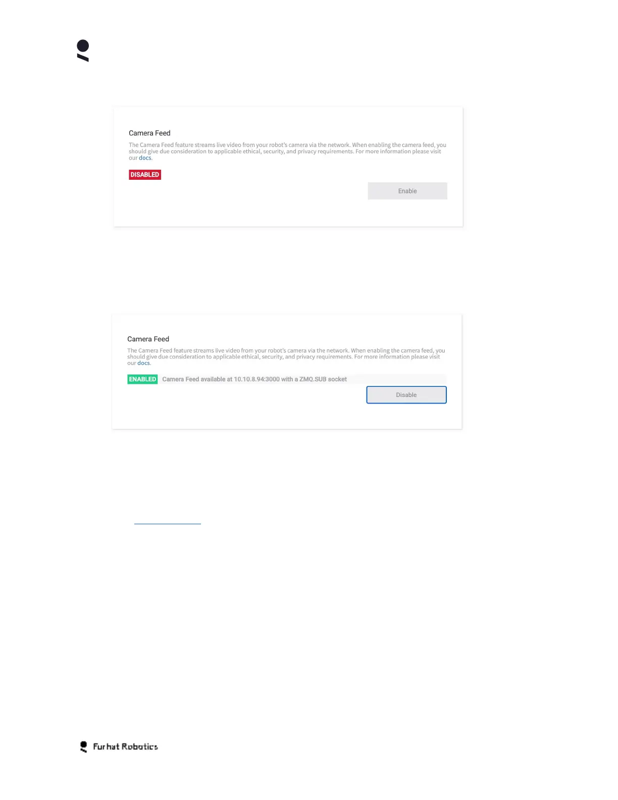 In order to enable the camera feed, simply select the Enable button. The system will display