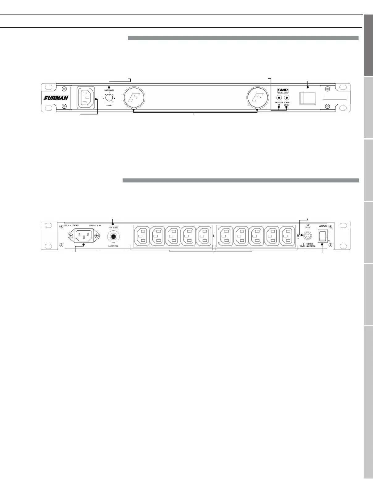 Furman PL-8C E - Panel Layout; Front Panel Description; Rear Panel Description