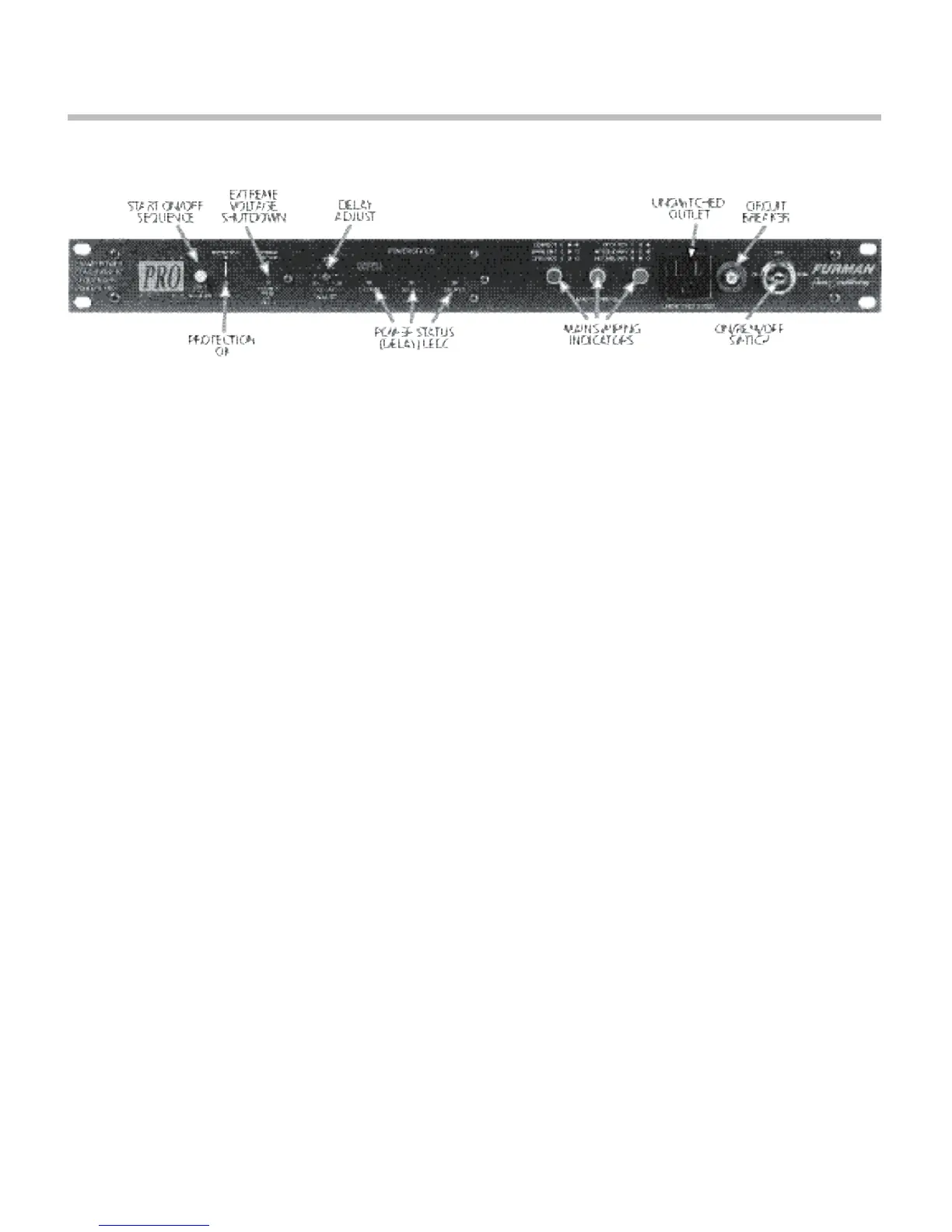 Furman PS-PRO - Front Panel Controls and Indicators; Start ON;OFF Sequence Button; Protection OK LED; Extreme Voltage Shutdown