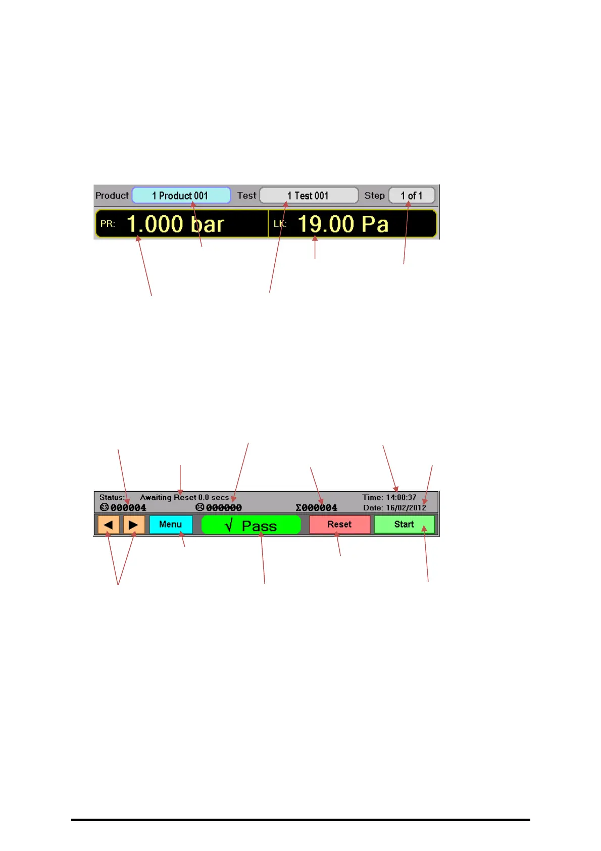 The FCO770 run time displays that are usually left showing when a test is in progress