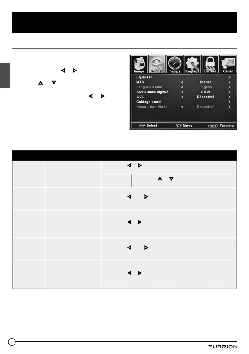Appuyez sur ou sur pour sélectionner Stereo (Stéréo), SAP (Audio