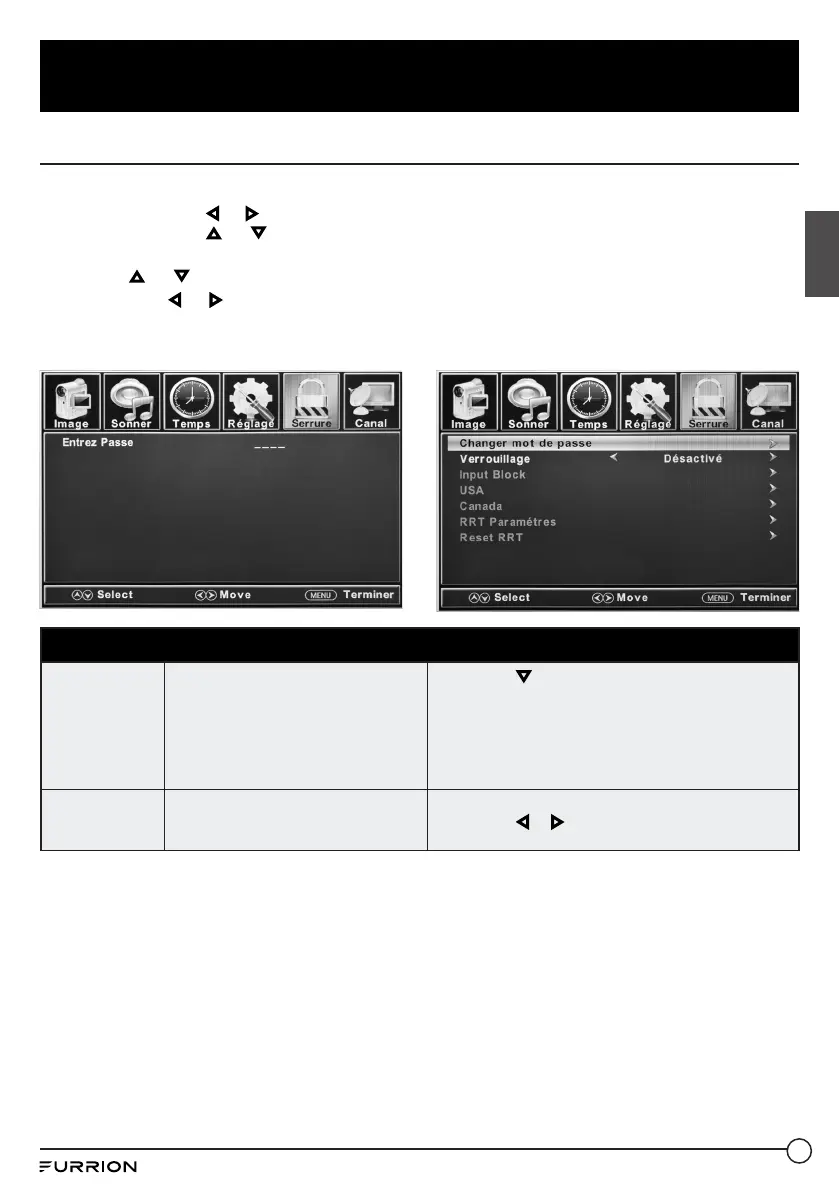 2. Utilisez la touche ou pour mettre en surbrillance le mode Lock (Verrouillage).