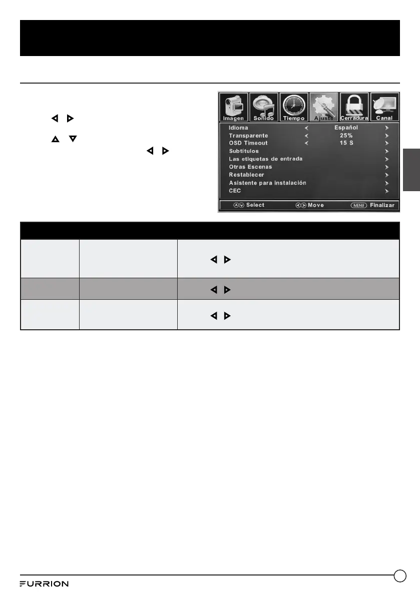 Presione o para seleccionar 0% / 25% / 50% / 75% / 100%