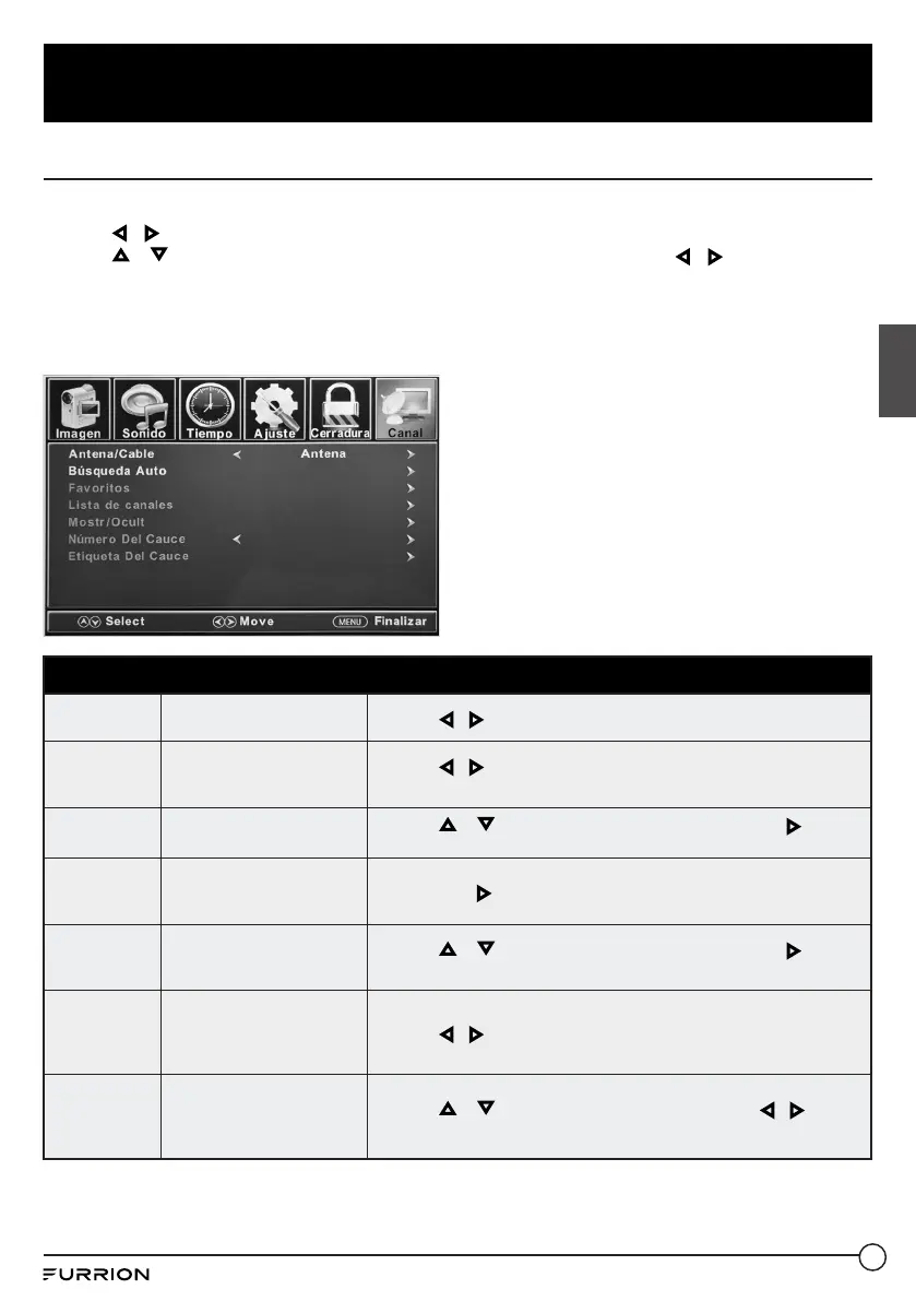 1. Presione el botón MENU. Aparecerá en pantalla la ventana de configuración.