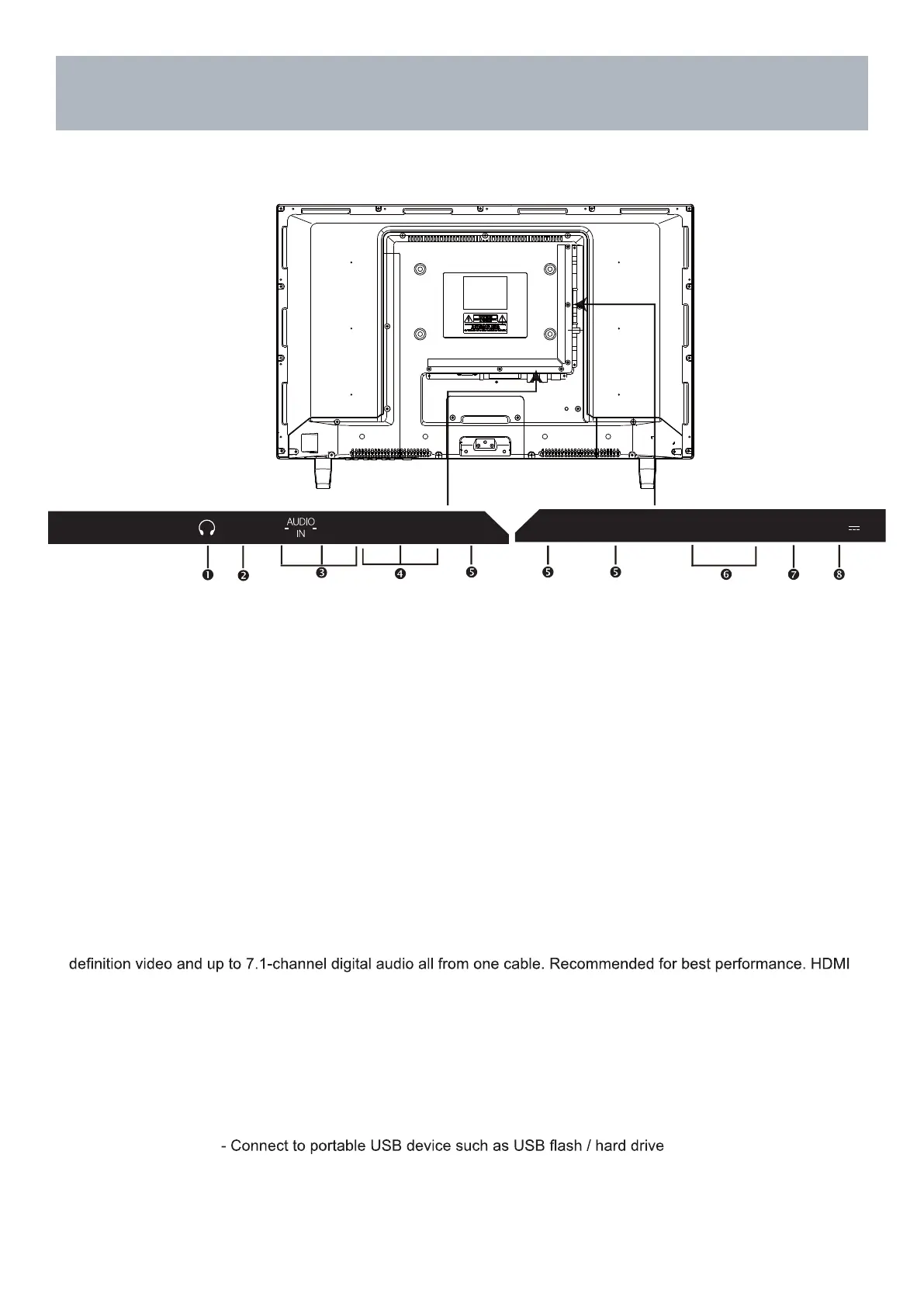 5. HDMI Input - Connects to digital AV equipment that feature HDMI connectivity. HDMI supports enhanced high