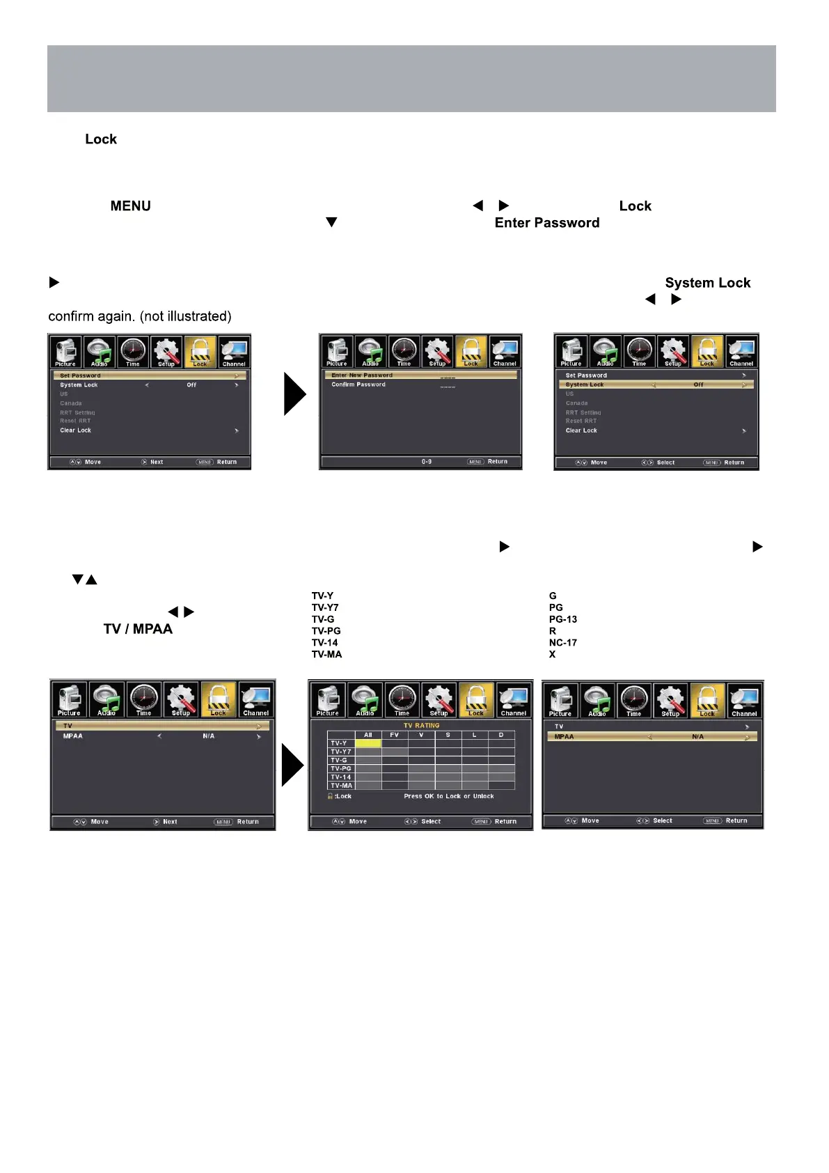 parental rating options by pressing the down arrow button to highlight . Enter your 4 digit code