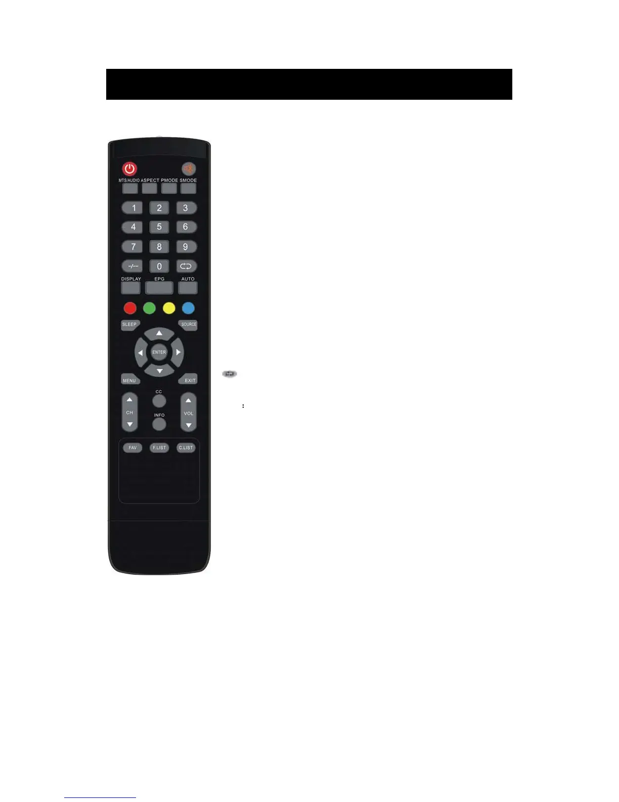 POWER: Power on/off button, press once to turn the TV on and press