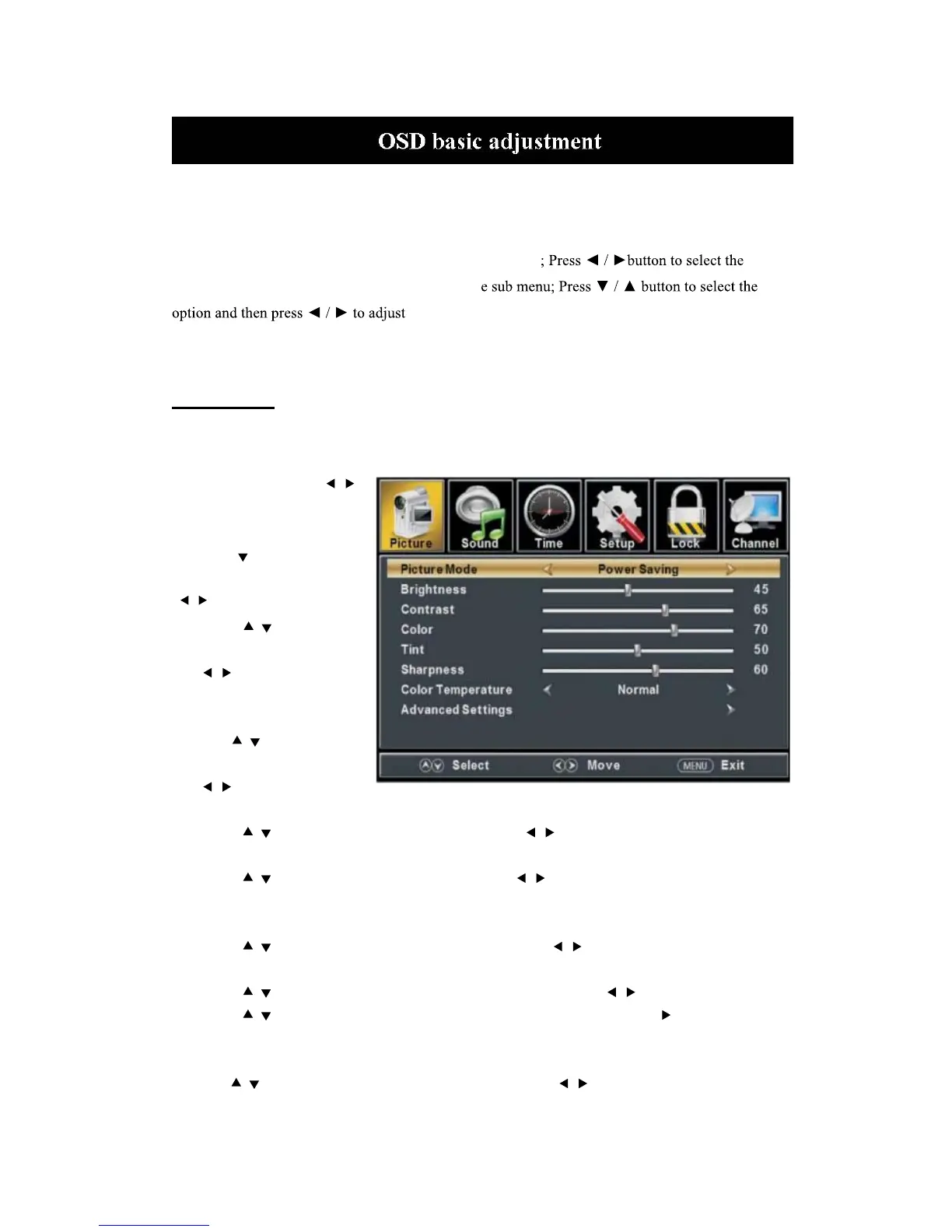 go back to the upper menu or EXIT button to close the OSD.