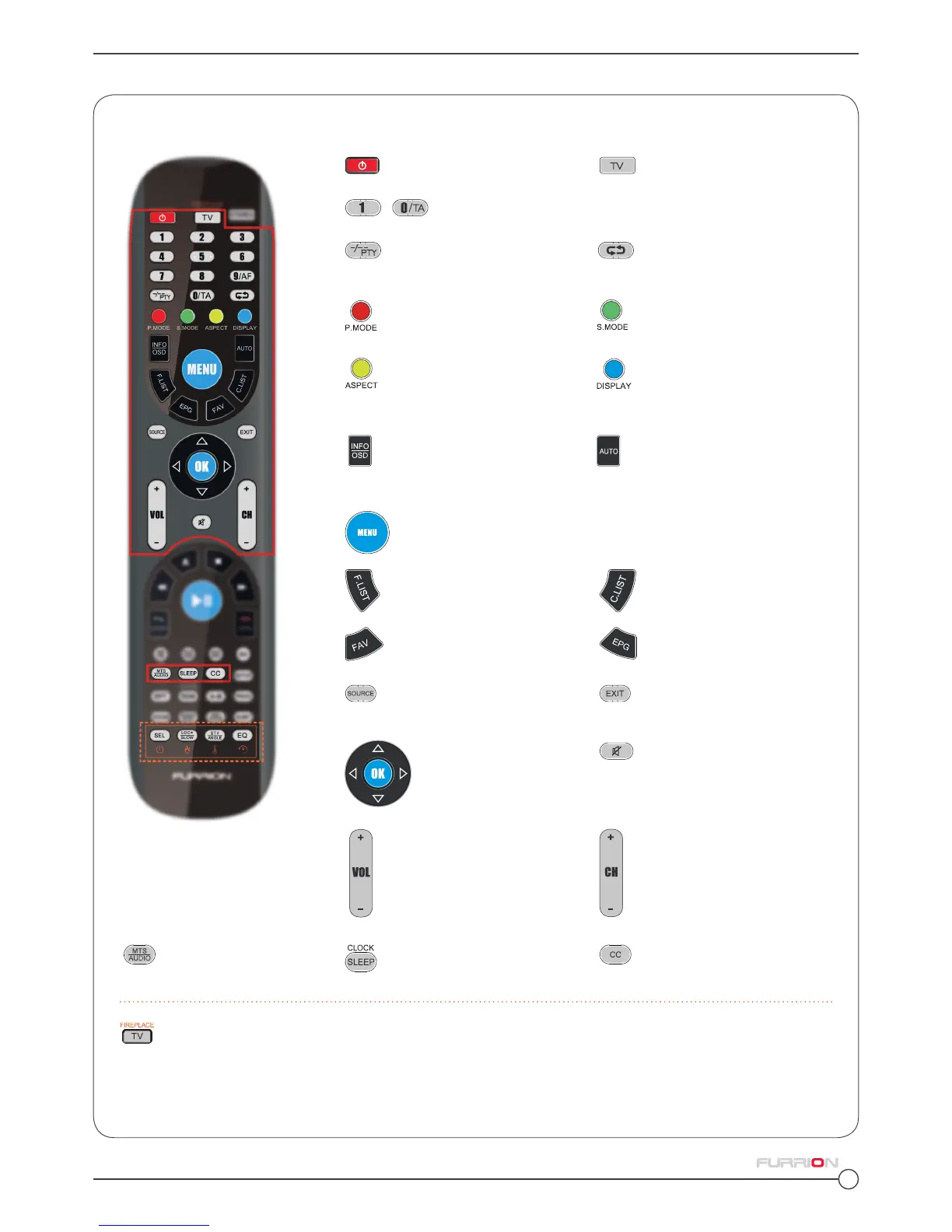 TV Selects Furrion Fireplace remote control functions