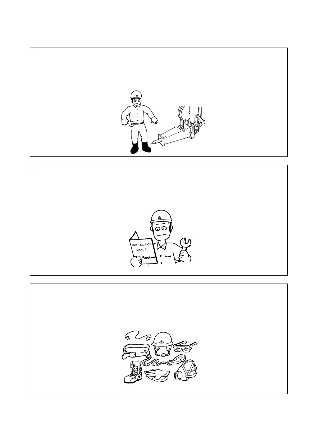 • Always wear safety glasses, safety helmet, safety boots, gloves and when necessary, ear
