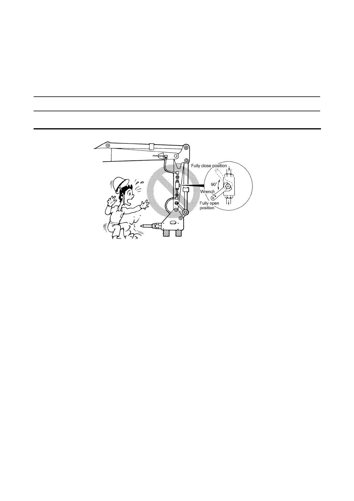 10. Turn the high-/low-pressure stop valve on the hydraulic breaker pipe at the end of the arm by 90