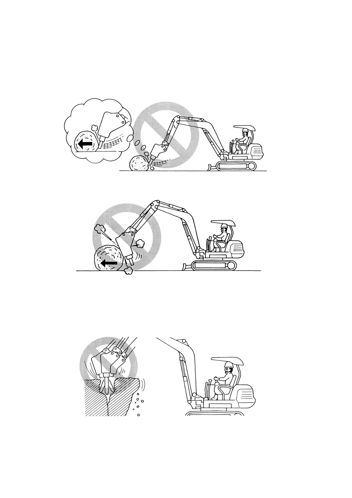 It is strictly prohibited to travel when the breaker is in contact with rock.