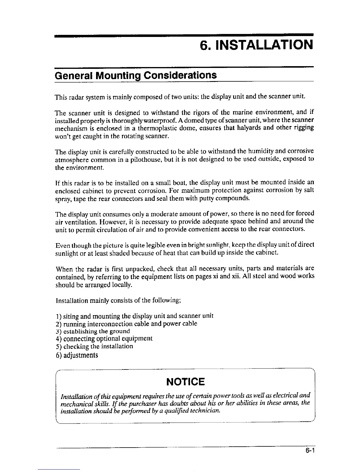 Furuno 1721 - 6. INSTALLATION; General Mounting Considerations