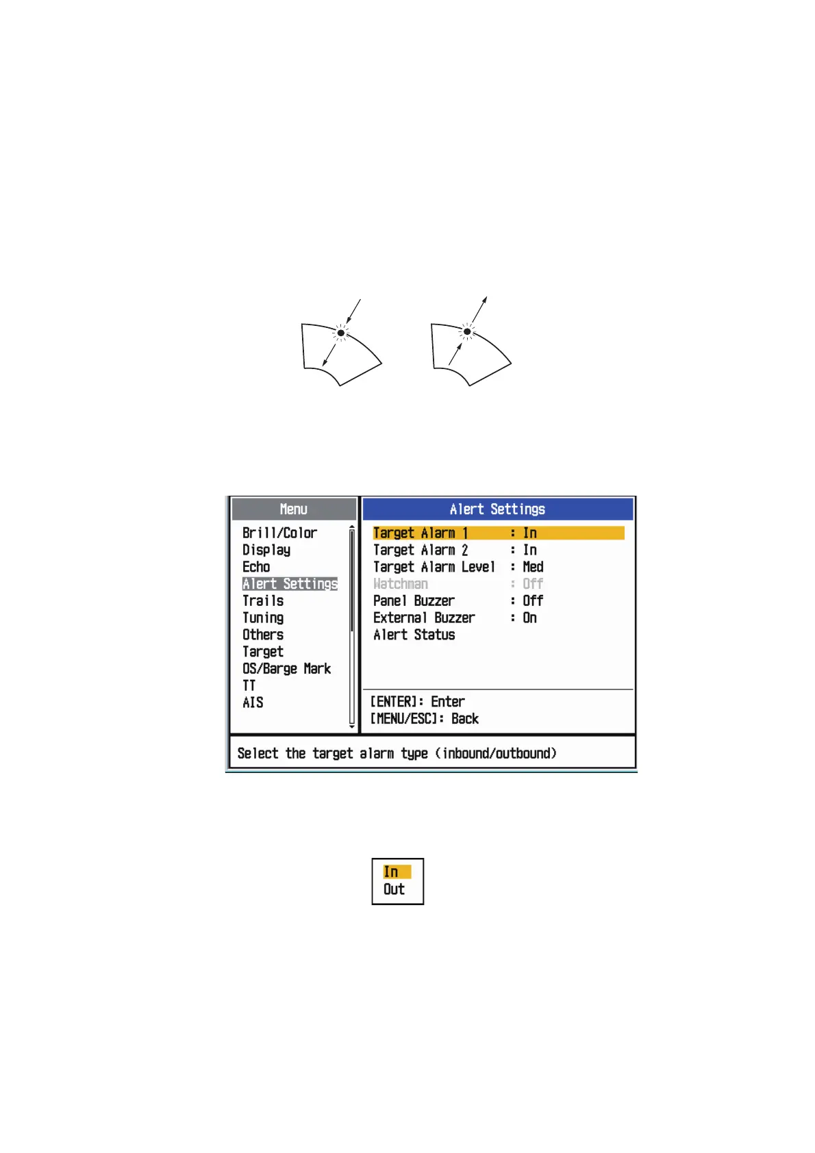 You can set the target alarm to activate against targets entering or exiting the alarm