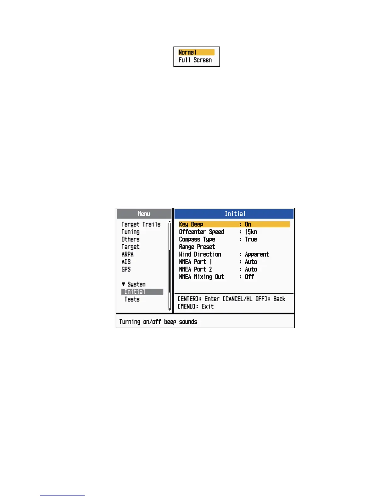The [Initial] sub menu in the [System] menu contains the items which allow you to cus-