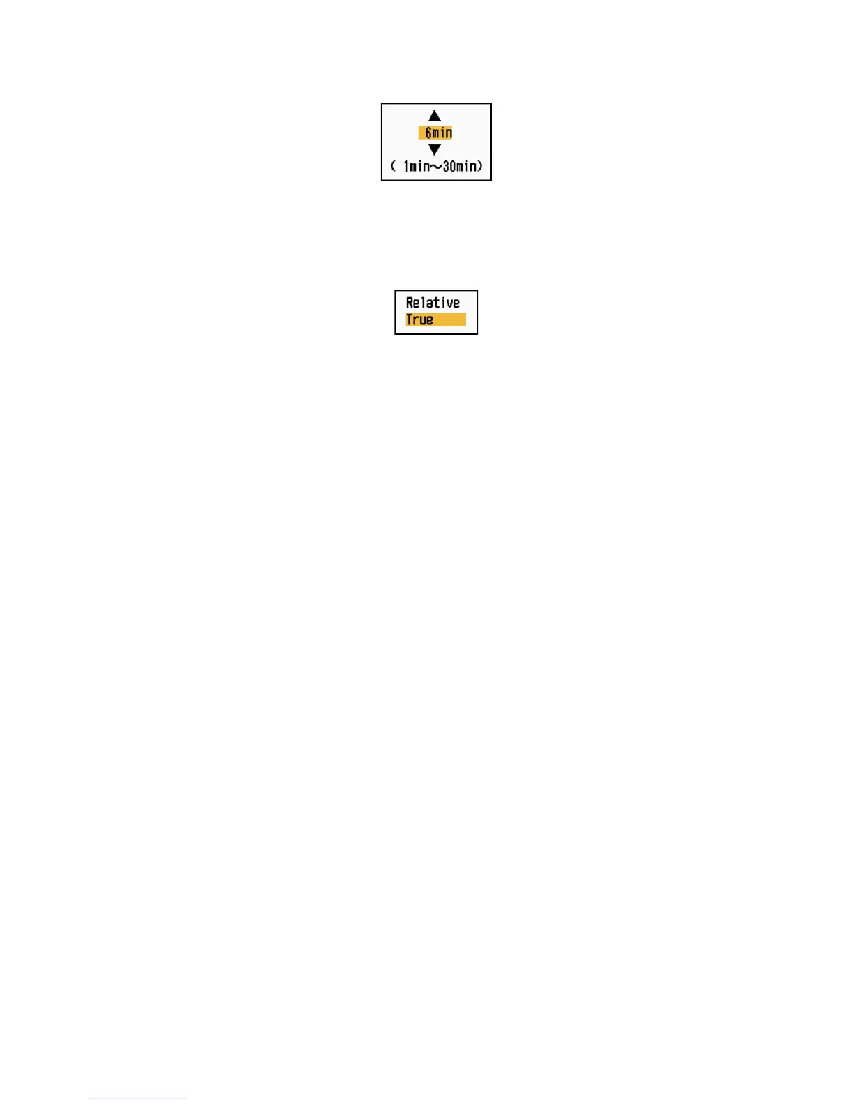 6. Use the Cursorpad (S or T) to select [Relative] or [True] then press the ENTER