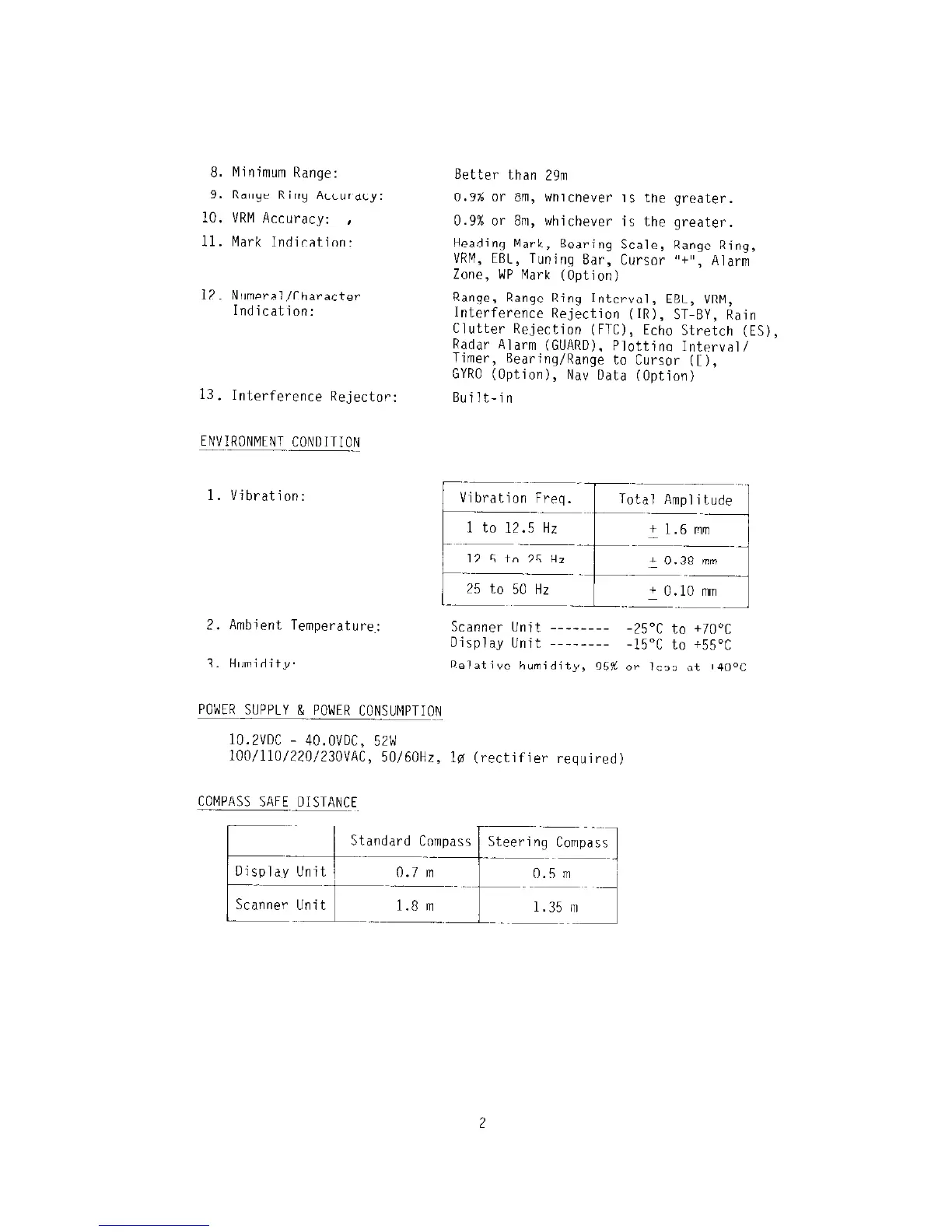 Furuno 1930 - Environment Condition; Power Supply & Power Consumption; Compass Safe Distance