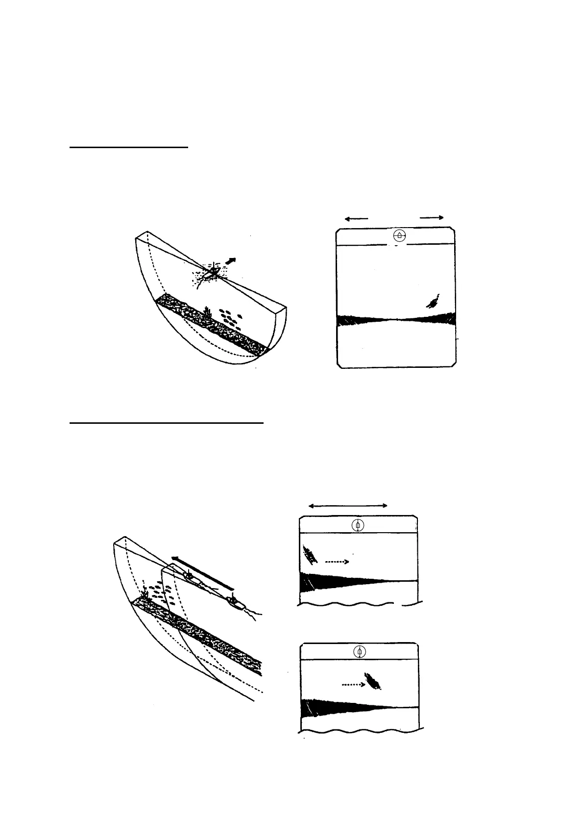 The sounding beam is directed fore-aft and the display is off-centered* to present a wider