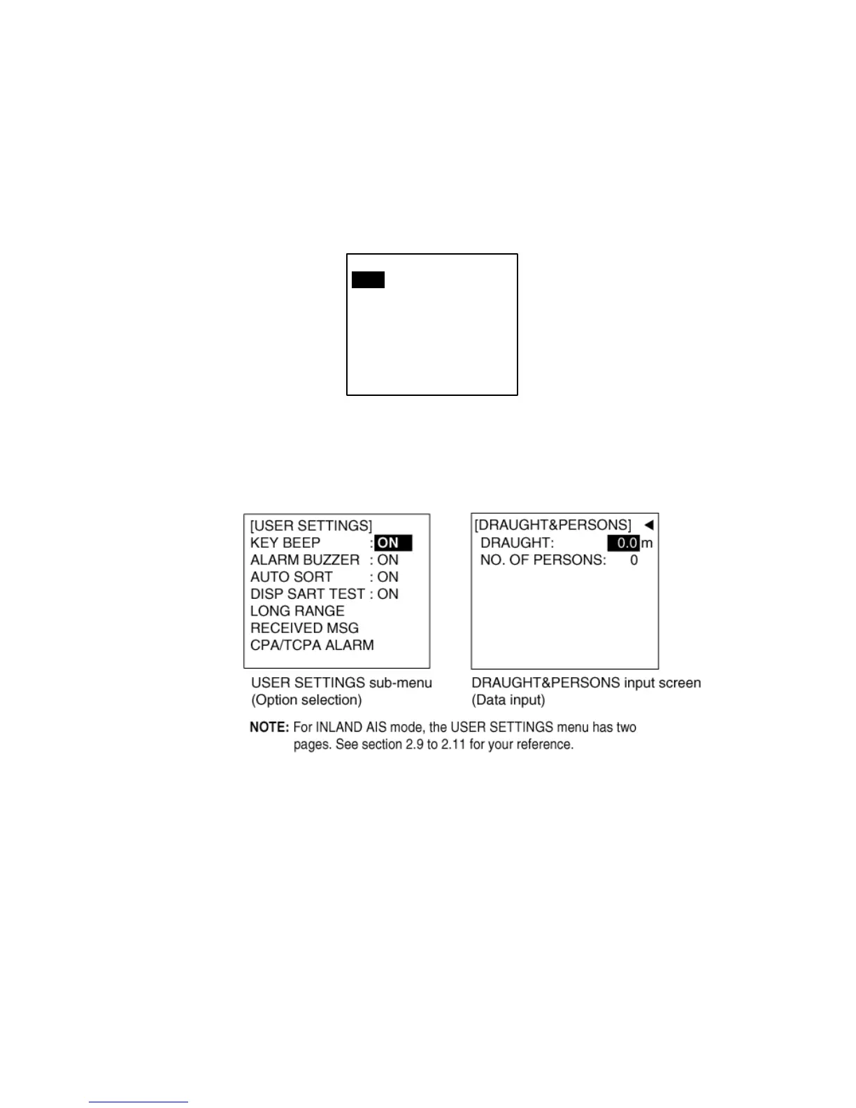 There are two types of sub-menus: option selection and data input. (Some