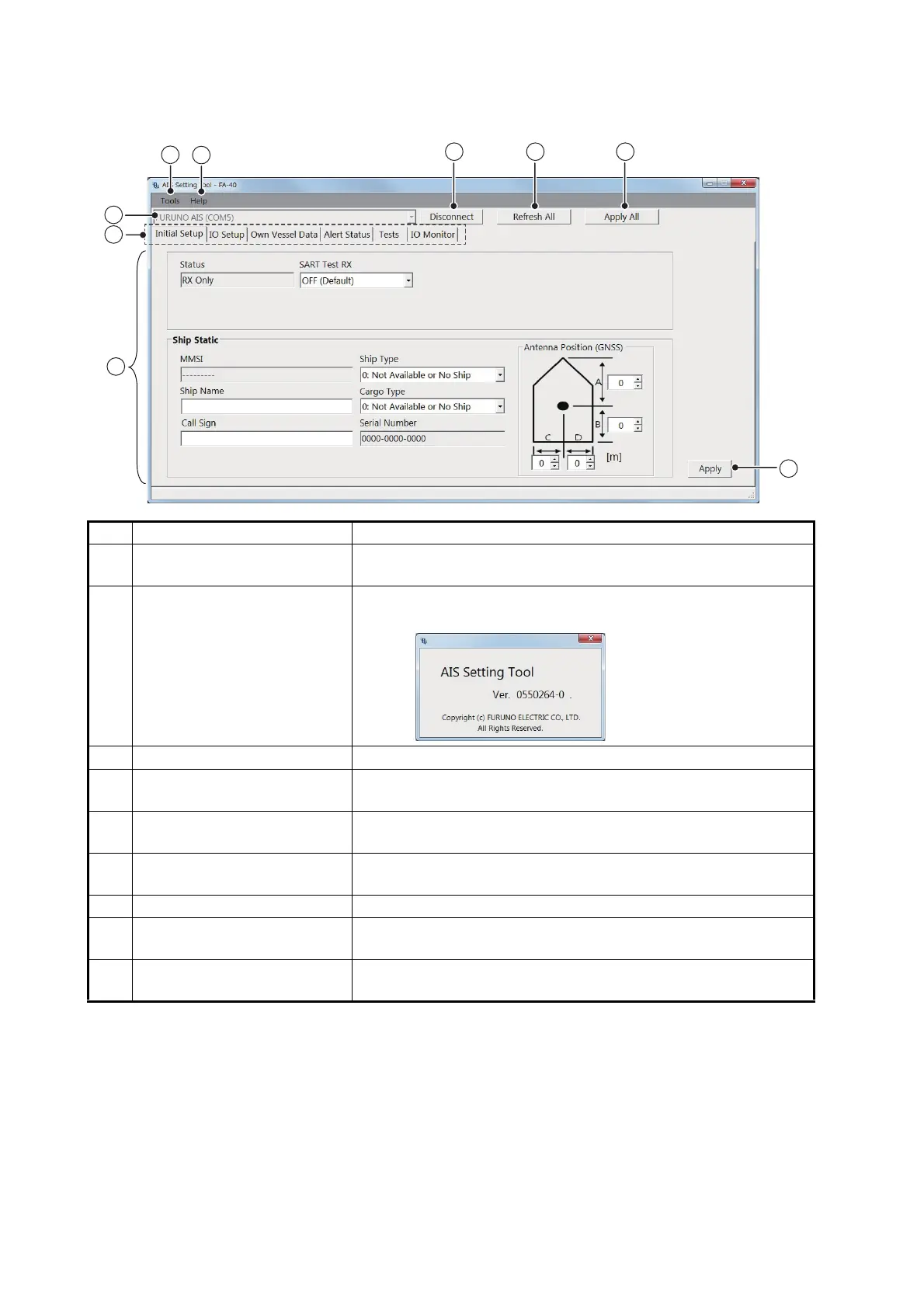 6 [Apply All] Saves all settings in all tab pages, and then transmits the data