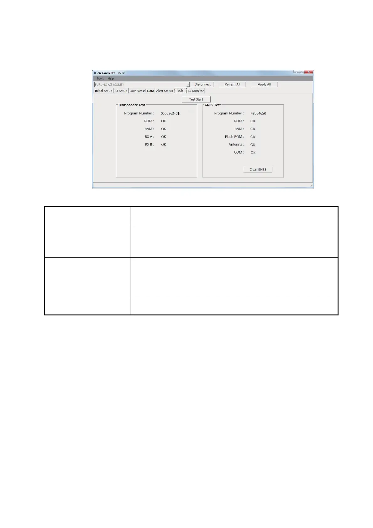 [Clear GNSS] (for the PC) Click to initialize the internal GNSS core. The confirmation message