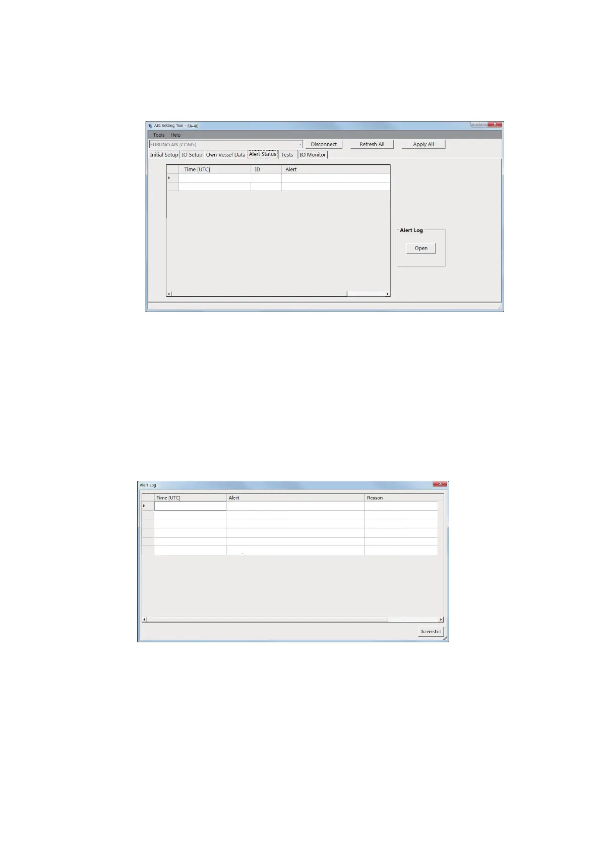 パソコンの場合、[Alert Log] [Open] をクリックすると、過去に発生したアラート