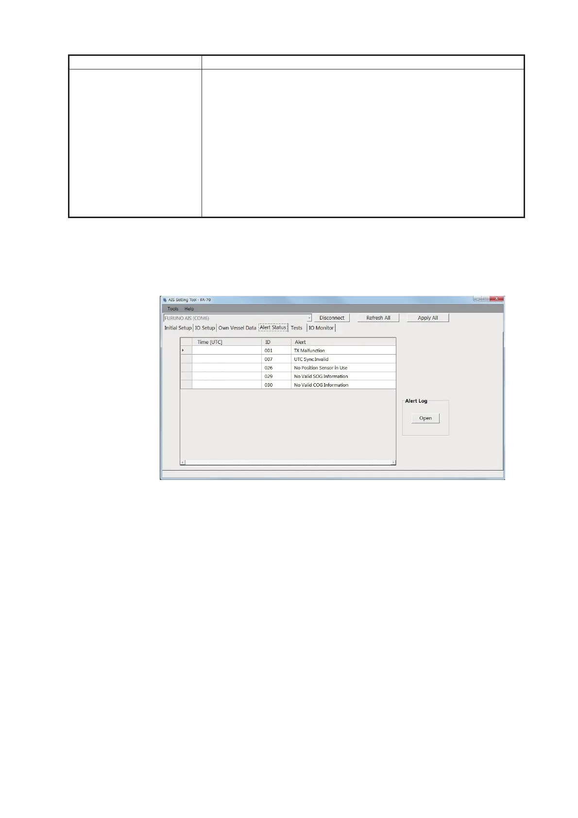 [Alert Status] screen for PC