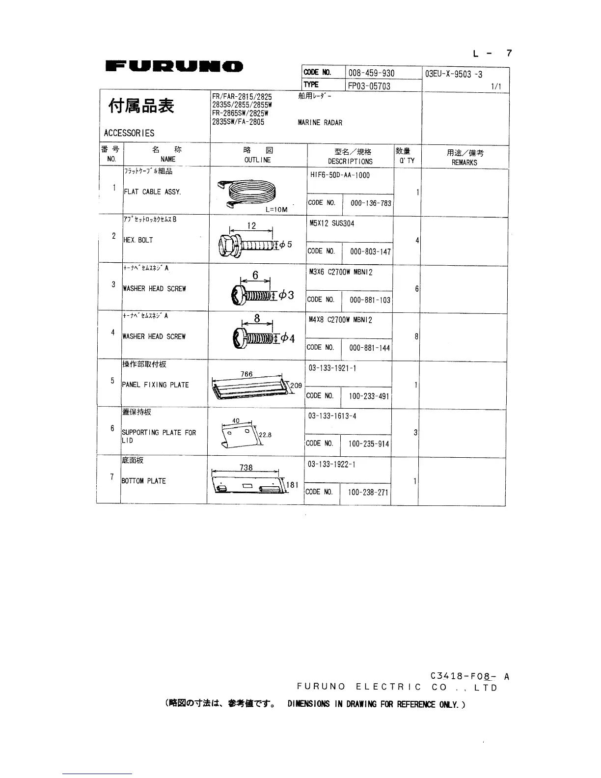 Furuno FAR-2835S - Accessories List