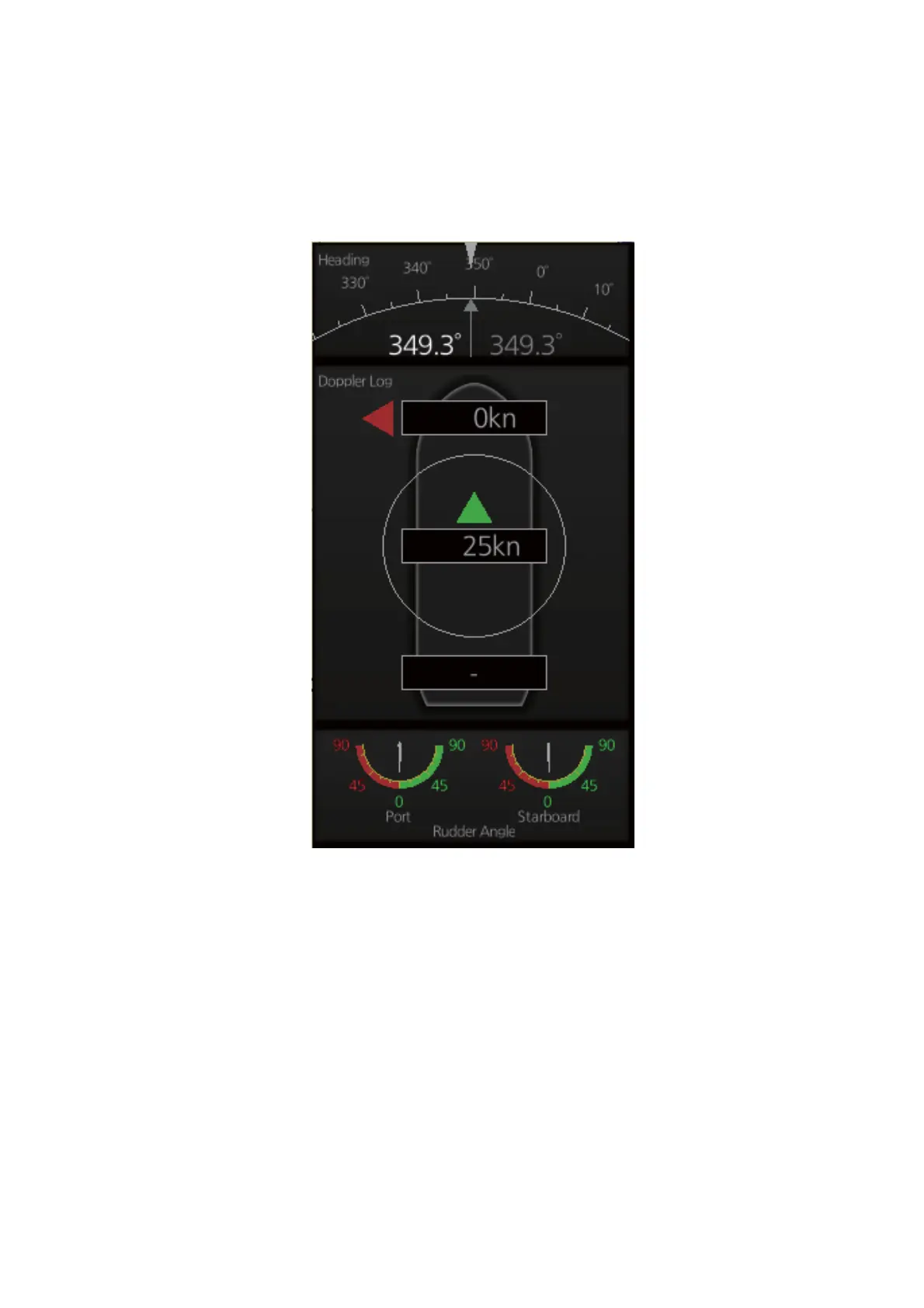 shows heading, doppler log speed and rudder angle. To show or hide the mini conning