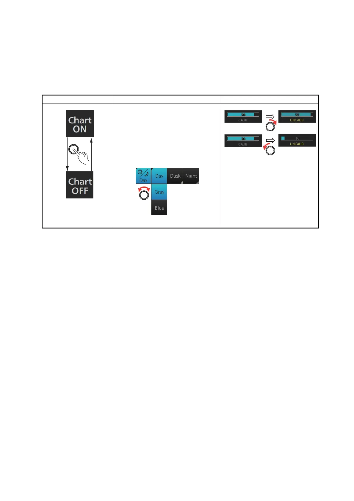 2) Drop-down list button or slider bar: Push the knob then rotate the knob to