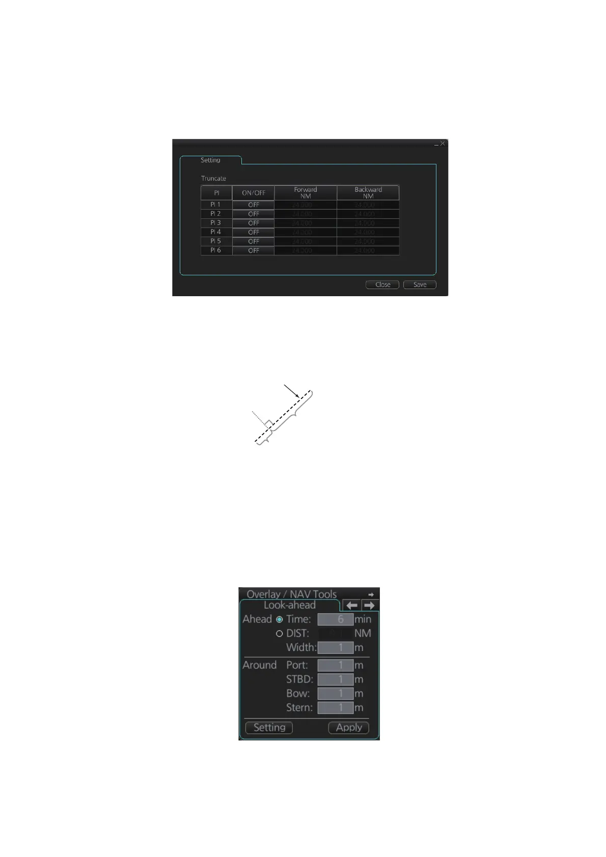 Look-ahead sets the area ahead and around own ship for which to check for safe nav-