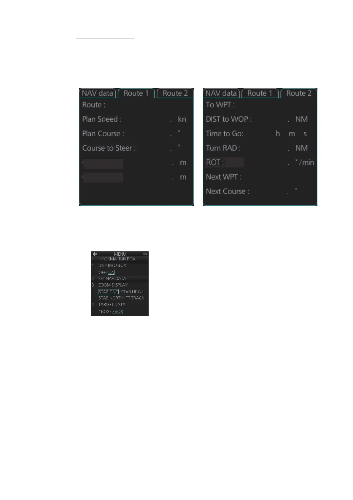 ing to next waypoint. Click the [Route 1] or [Route 2] tab to find route information.
